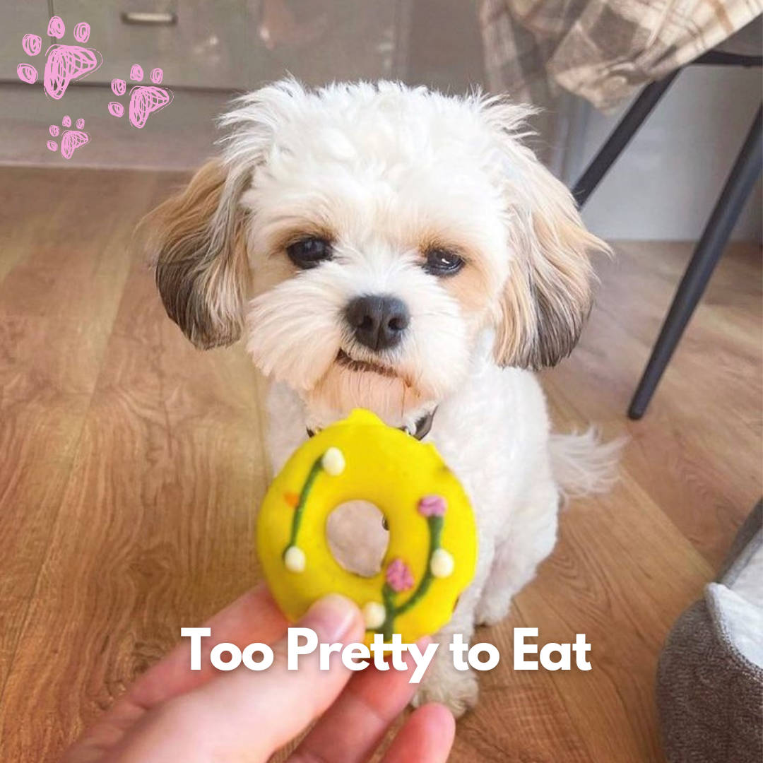 Our handmade donuts (our version of a perfect doughnut for dogs!) are made from vanilla sponge and hand-decorated by our barking bakers using only the finest human grade ingredients.