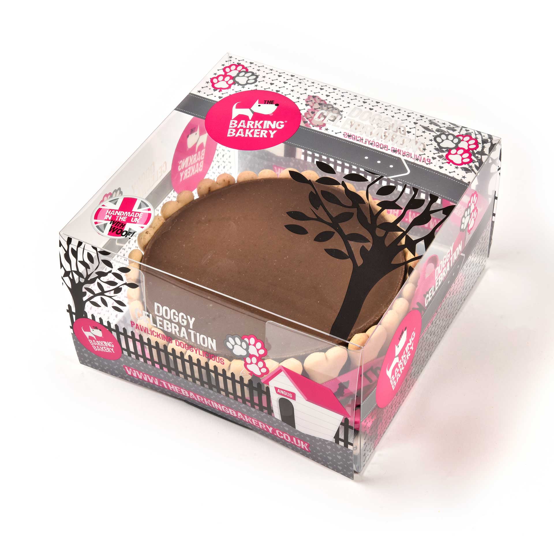 The Plain Party sized (6inch) doggy occasion sponge is topped with our carob yoghurt frosting and surrounded with crunchy doggy bone shaped biscuits. The cake comes with an icing pen, allowing you to write your own personal message. We also include a candle for lighting.